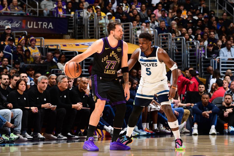 前一场强强对话击败尼克斯后,湖人队迎来与森林狼队的关键卡位战,赛前两队分列西部第四与第五,两队仅差1个胜场。